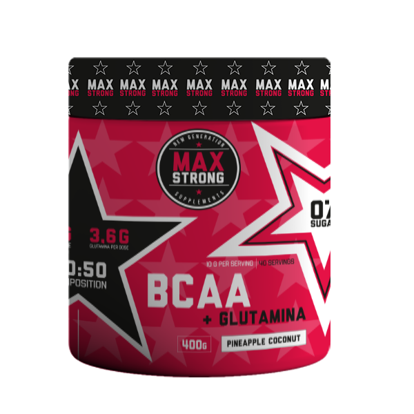 GLUTAMINA+ BCAA de MAX STRONG es una combinación perfecta de BCAA’s con glutamina que mejorará nuestra recuperación después de los entrenamientos intensos, reducirá el catabolismo muscular, retrasará la aparición de la fatiga y favorecerá el aumento de la masa muscular.